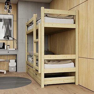 Основной материал в производстве — шлифованная архангельская сосна высококачественной камерной сушки. Она более плотная и прочная по структуре, что делает эту мебель более долговечной.
