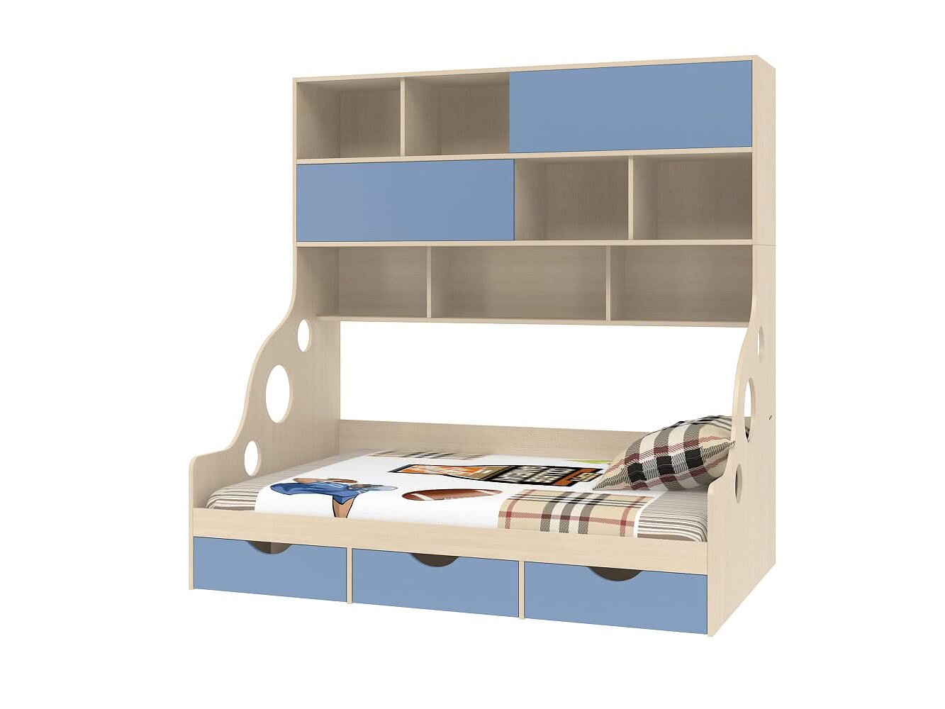 Комплектация бортиком — удобное дополнение к кровати с антресолью Дельта 21.02, которое гарантирует безопасный сон любителю активно ворочаться во сне.