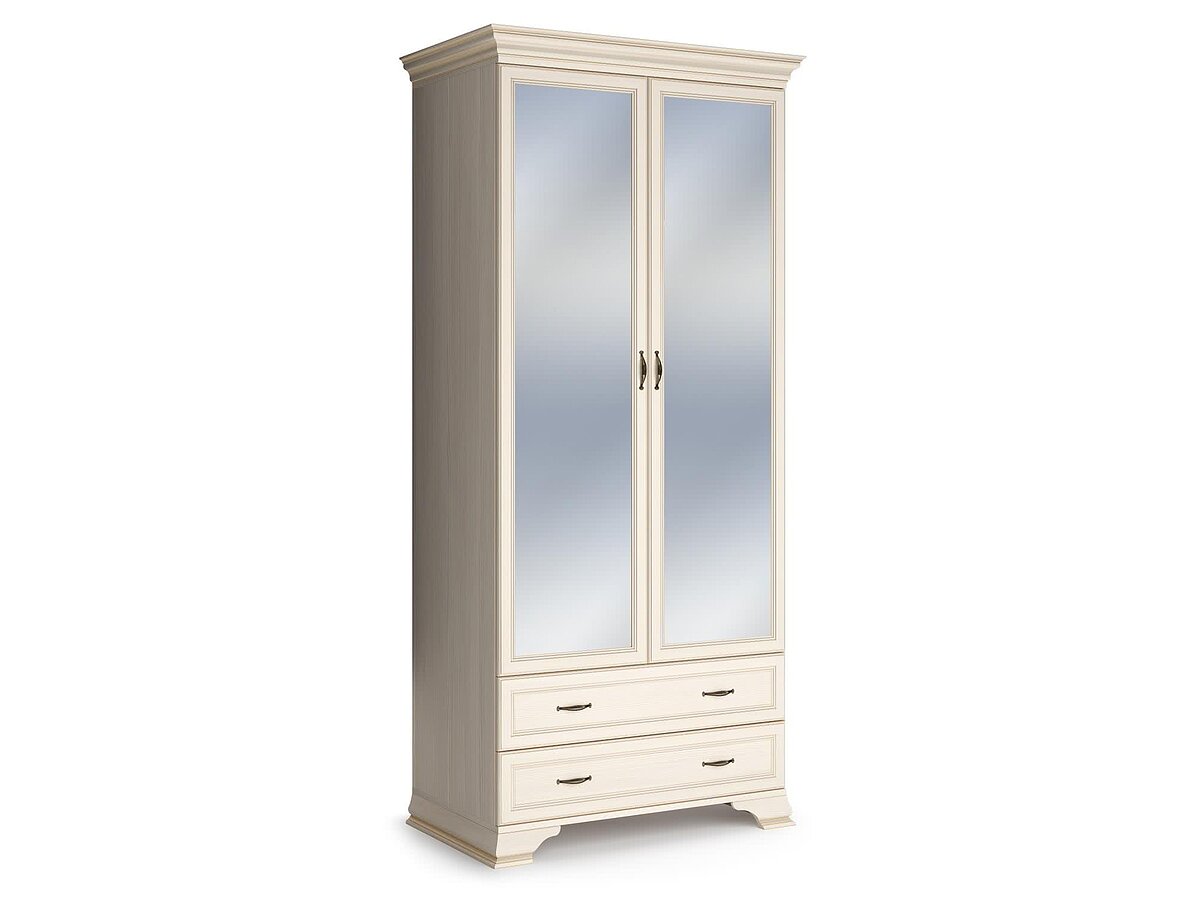 Шкаф распашной двухдверный предназначен для вертикального хранения одежды. Горизонтальная штанга для вешалок может быть заменена на обычные полки по вашему желанию - они продаются отдельно. У него есть 2 выдвижных ящика для хранения белья и разных мелочей. Шкаф имеет ножки из МДФ-профиля, а также комплектуется декоративным карнизом.