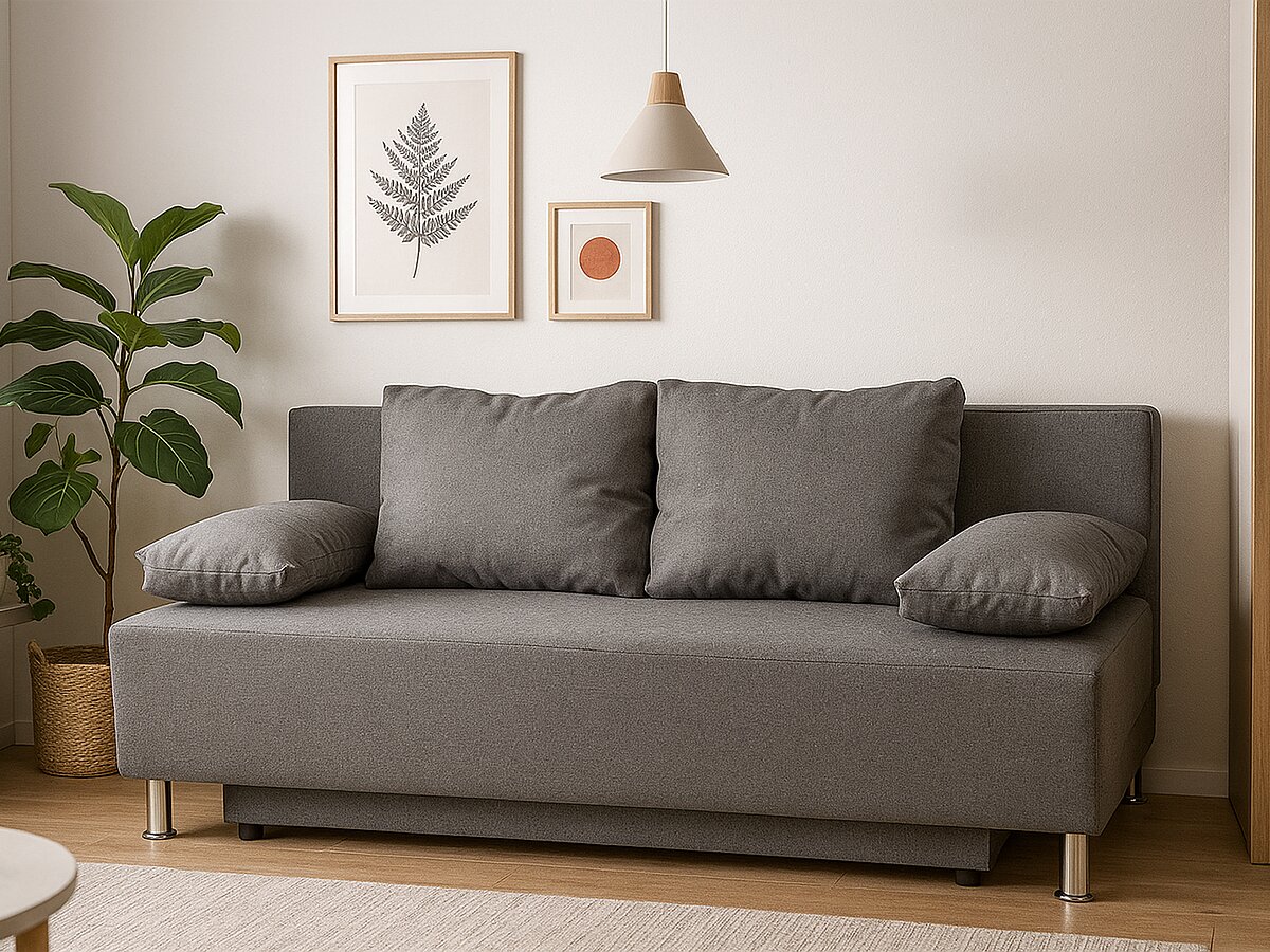 Диван Чарли имеет удобный механизм складывания "Еврокнижка". Сиденье дивана выдвигается, а спинка опускается вперед, образуя ровное место для сна. Такой диван не составит труда сложить и разложить каждый вечер и утро.