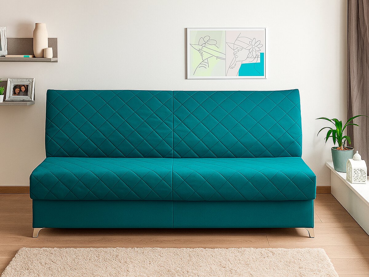 Диван Клик-Клак с ножками релакс имеет простой механизм раскладывания "Книжка". Спинка дивана опускается назад, образуя вместе с сиденьем ровное спальное место. Такой диван легко разложить каждый вечер и сложить утром.
