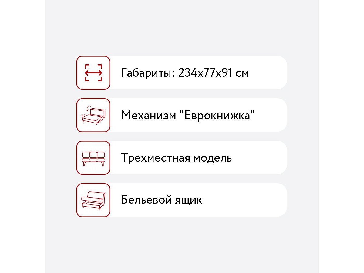 Диван Амстердам Лайт имеет удобный механизм складывания "Еврокнижка". Сиденье дивана выдвигается, а спинка опускается вперед, образуя ровное место для сна. Такой диван не составит труда сложить и разложить каждый вечер и утро.