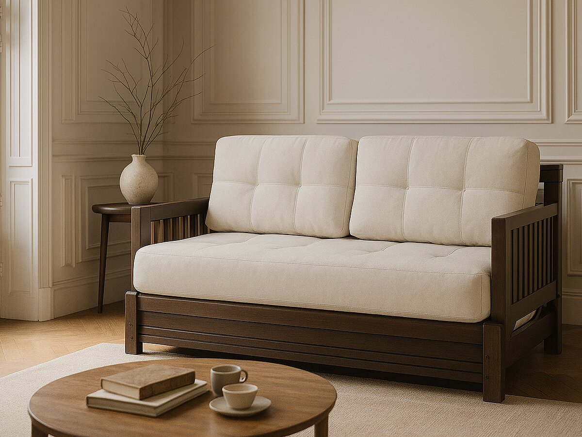 Диван Джуно имеет встроенное раскладывающееся спальное место. Французская раскладушка предполагает использование для сна тонкого матраса, который можно складывать трое.