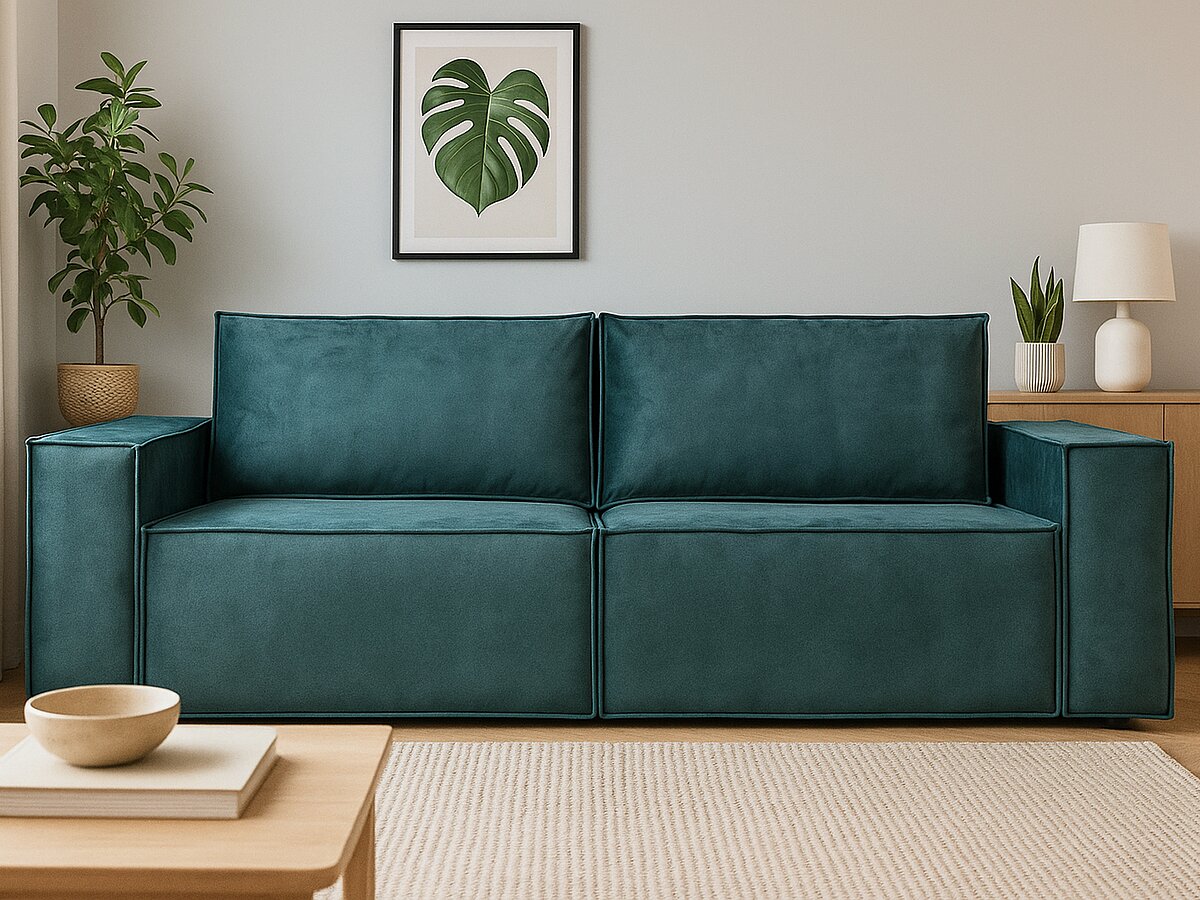 На диван Лофт голубой велюр могут сесть не менее 4-х человек.