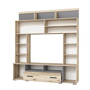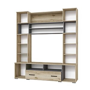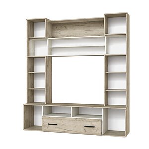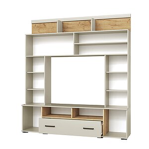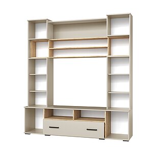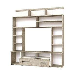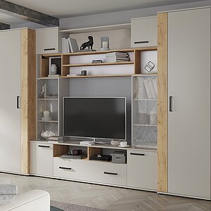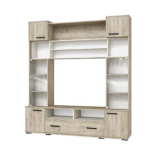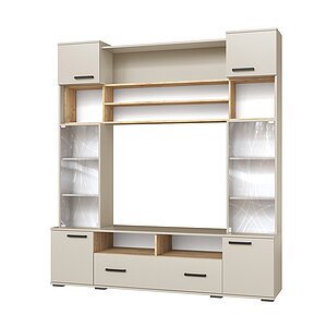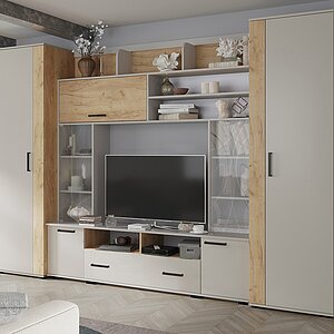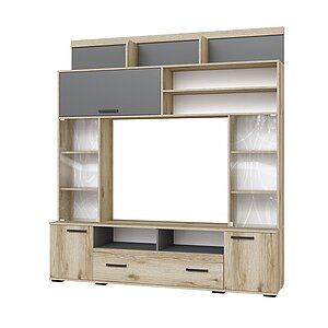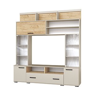 Стенка Интерьер центр Николь, Дуб крафт серый, Софт Айвори