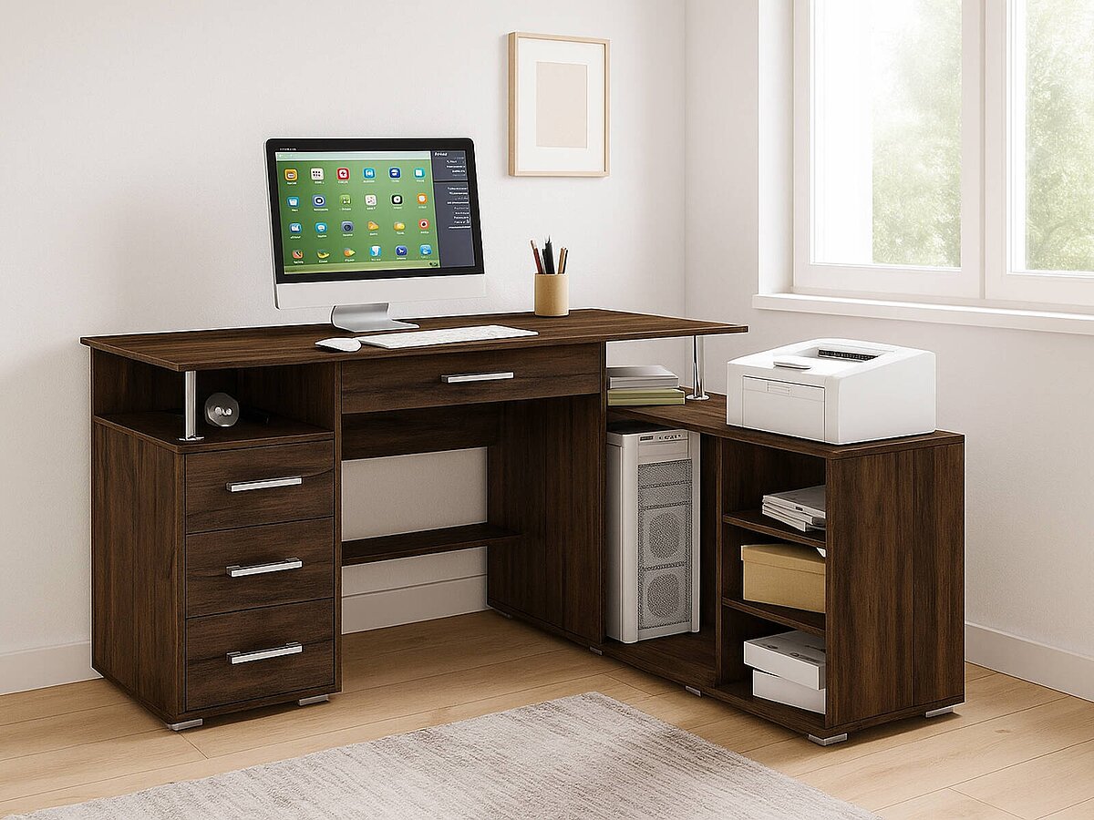 Модель имеет угловую конструкцию. Стол Амбер-12Я (КСАМ-12Я) компьютерный позволит максимально эффективно организовать пространство комнаты.