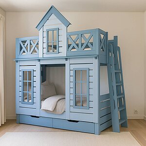 Кровать-чердак КарИВи Домик Сказка с выдвижным столом ДС-14
