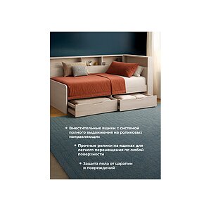 Кровать Homegrad Ксения 90 с ящиками и прикроватным блоком