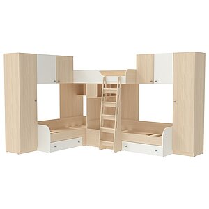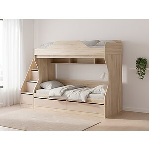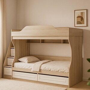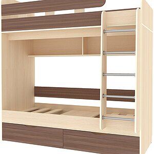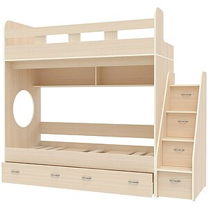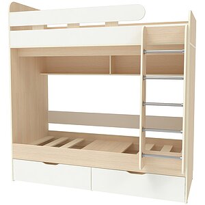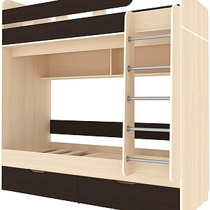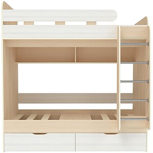 двухъярусные кровати с полками цвета светлого дуба