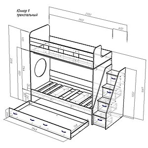 Трехъярусная кровать КарИВи Юниор