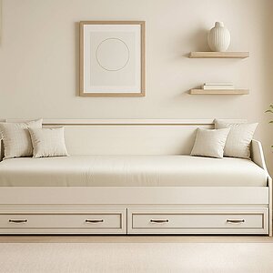 Кровати с выдвижными ящиками из МДФ цвета дуб