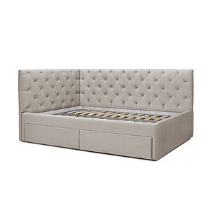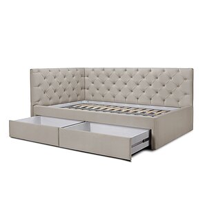 Бежевые мягкие кровати с выдвижными ящиками для детской