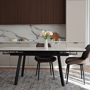 Раскладная конструкция стола Князь позволяет увеличивать размер столешницы.