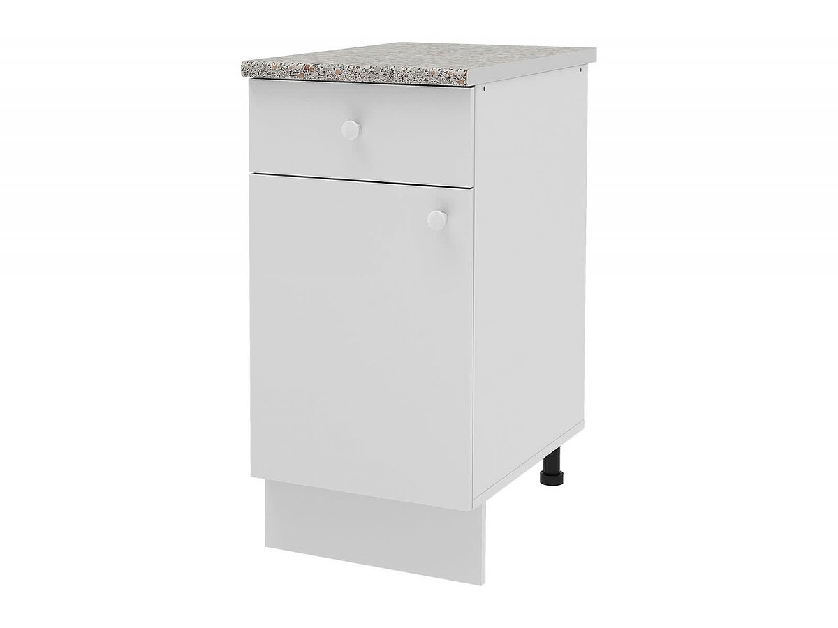 В комплект входит все необходимое для организации хранения на кухне максимально эффективно. Столешница толщиной 27 мм выполнена из влагостойкого пластика — она не деформируется от влаги и перепадов температур. Петли — четырёхшарнирные.