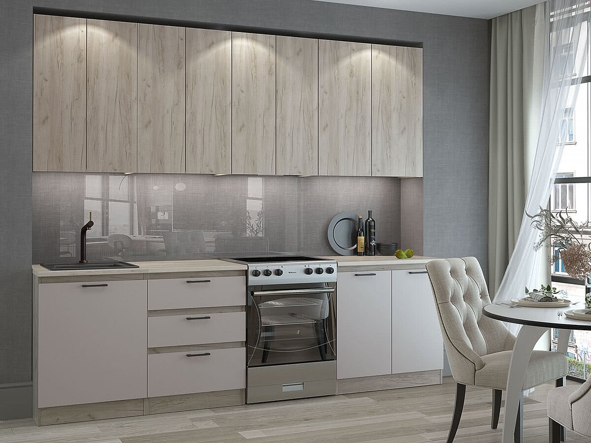 Кухня «Сан-Ремо» создана для поклонников современного дизайна и продуманного функционала. Корпус и фасады выполнены из ЛДСП, этот материал устойчив к механическим воздействиям, долго сохраняет первоначальный вид и легко очищается от загрязнений.