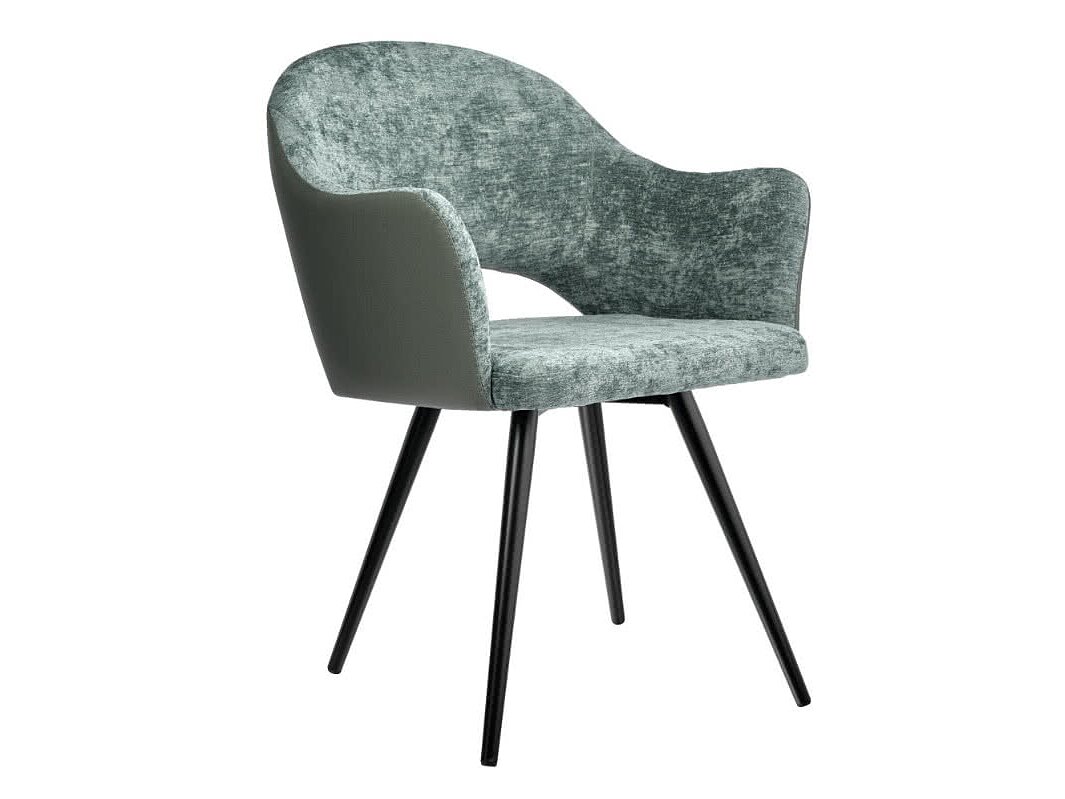 Мягкая обивка спинки делает стул Bruno поворотный, зелёный шенилл с экокожей особенно удобным.
