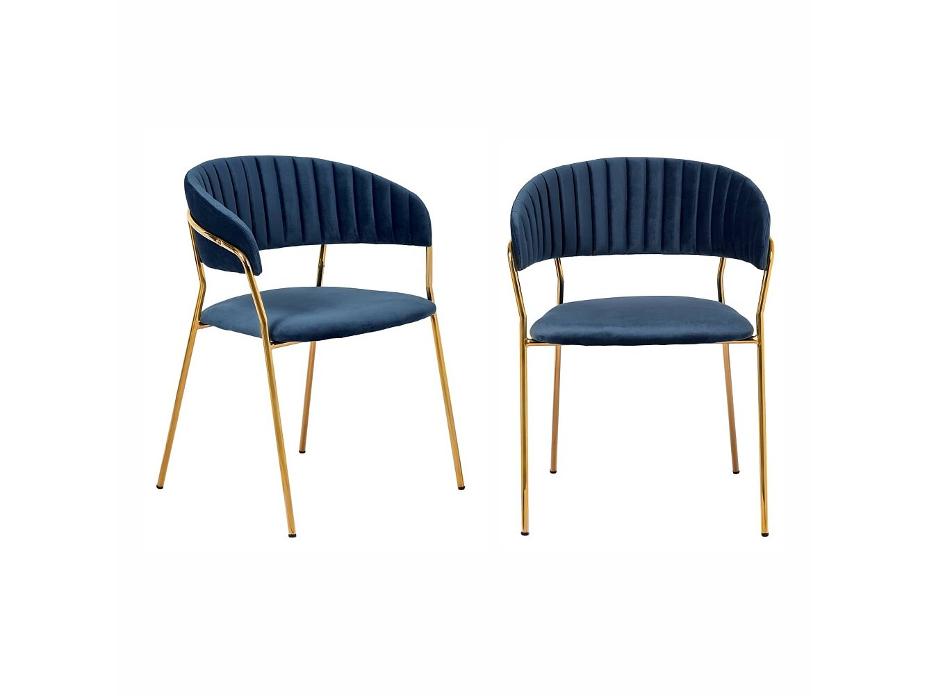 Стулья Turin (комплект 2 шт), синий/золото изготовлены с использованием элементов из металла. Металлическая конструкция делает стул высоко надежным и придает стильный вид.