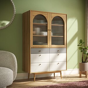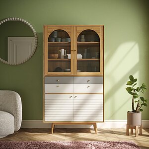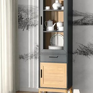 Буфет Этажерка Bruni BR51 высокий с витражными стеклами