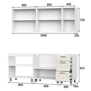 Кухонный гарнитур SV-мебель Грейвуд, белый / дуб кремовый