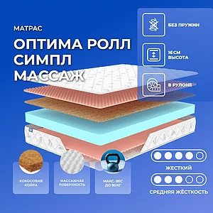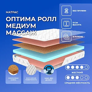 Матрас без пружин Dimax Оптима Ролл Медиум Массаж