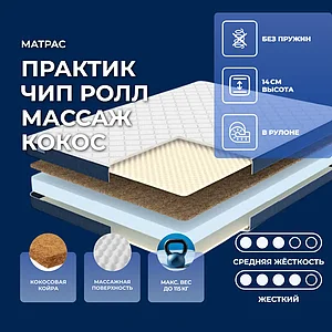 Матрас без пружин Dimax Практик Чип Ролл Массаж Кокос