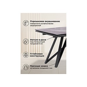 Стол Woodville Вилсон 140(200)х80 серый мрамор/черный