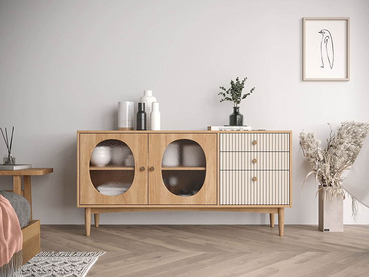 Материал: Корпус ЛДСП, фасад МДФ с гравировкой, ноги - массив березы.