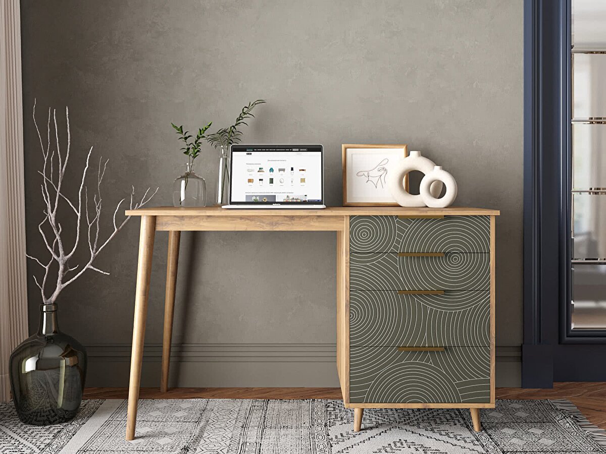 Материал: корпус — ЛДСП, фасад — МДФ с гравировкой, ноги — массив березы.