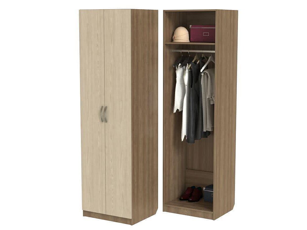 Шкаф оснащён вместительным отделением для одежды на вешалках и верхней полкой для головных уборов, коробок или аксессуаров. Удобная глубина позволяет хранить не только повседневные вещи, но и сезонную одежду. Компактная ширина делает шкаф отличным выбором для небольших помещений и узких коридоров.