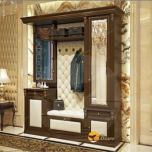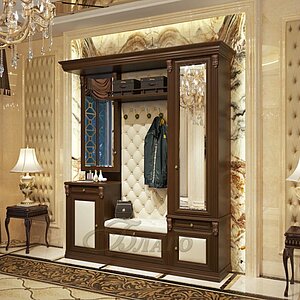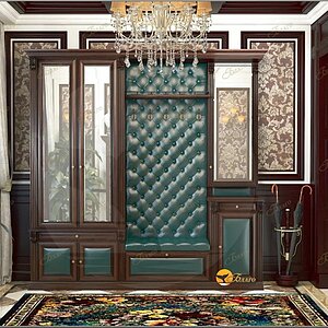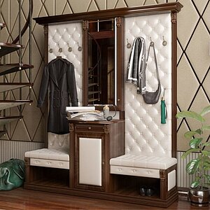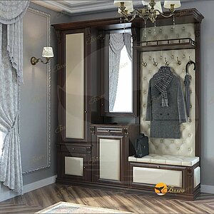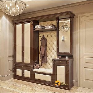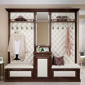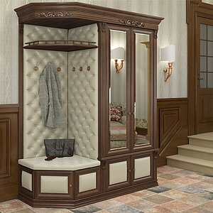 Готовые прихожие в классическом стиле с зеркалом цвета орех