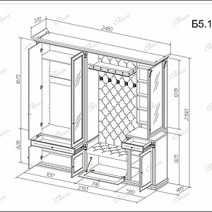 Б5.13 с зеркалом и вешалками (без банкеток), орех