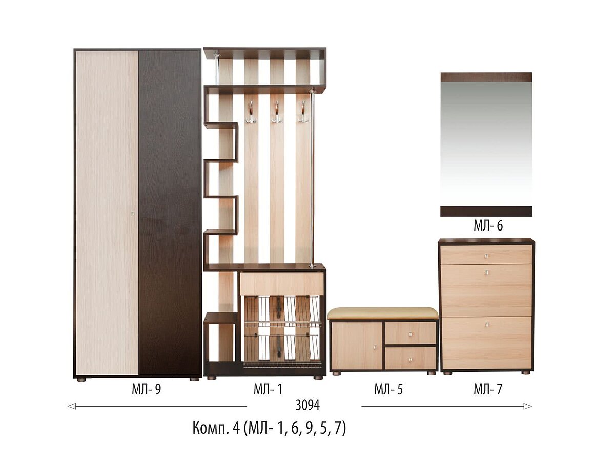 • Обувница МЛ-7 (ШхГхВ), мм: 624х316х897.