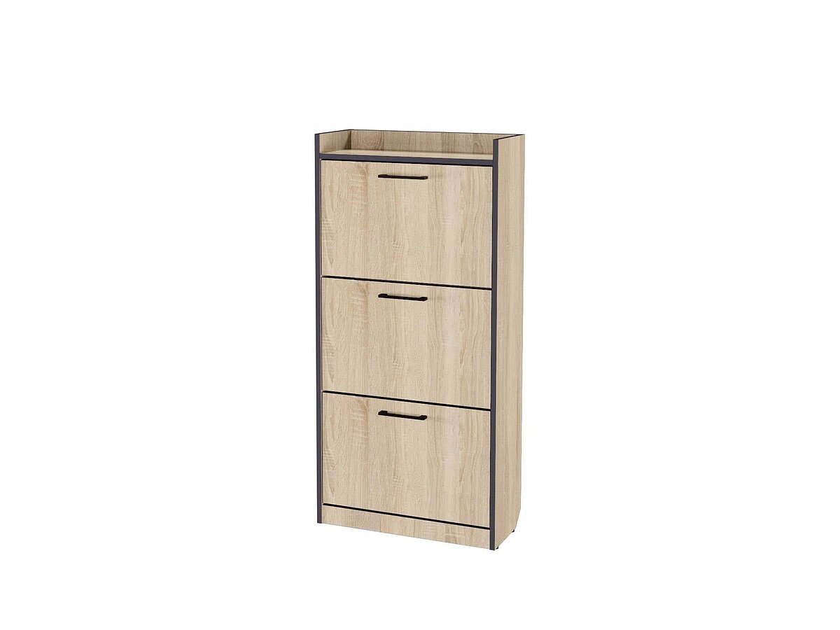 Конструкция обувного шкафа состоит из трех вместительных полок, которые выполнены в виде откидных дверок.