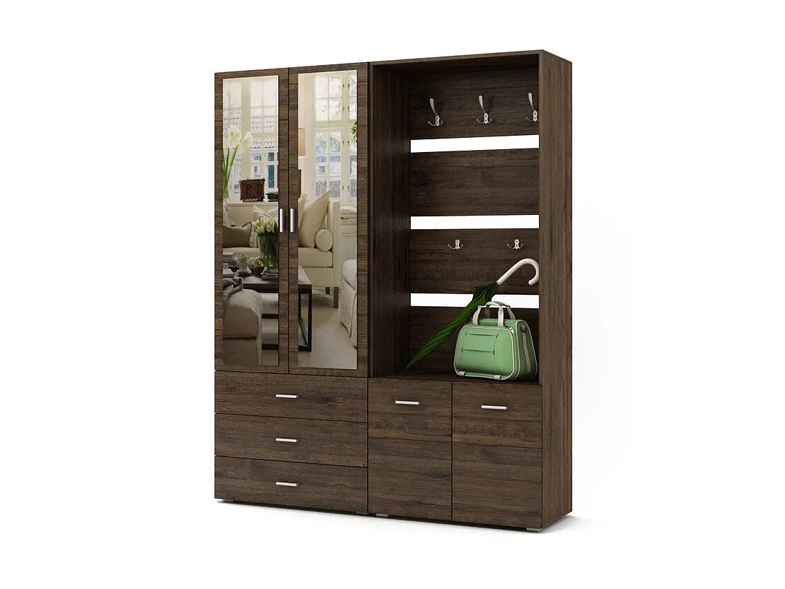 Прихожая Мартин ПРМ-2 идеально подойдет для семей с детьми, а также для всех, кто ценит порядок и удобство. На зеркальной поверхности удобно проверить внешний вид перед выходом. Для большего уюта добавьте декоративные корзины или органайзеры для хранения перчаток и шарфов в ящиках, используйте стильные коробки для обуви, а на крючки можно повесить сумки или ключницы. Скомпонуйте прихожую с мягкой банкеткой или пуфом для удобства переобувания. Отлично сочетается с напольными ковриками в спокойных тонах, минималистичными вешалками и настенными панно — создайте индивидуальный стиль вашей прихожей.