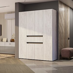 Шкаф для белья BTS Фиеста 4-х створчатый, дуб крафт белый