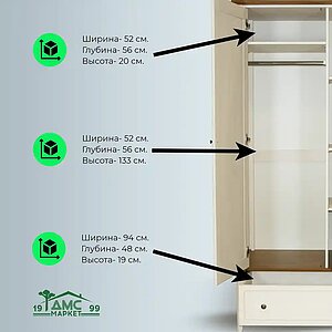 Шкаф ДМС Пенни 33 3-дверный с зеркалом, воск-антик 24