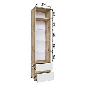 Пенал с витриной ТЭКС Плейона, Дуб Делано, Белый
