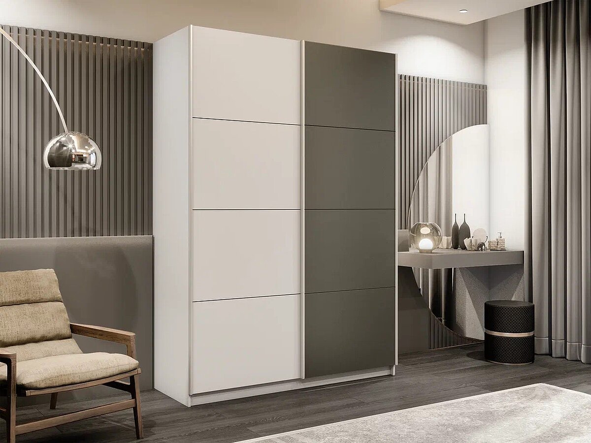 Шкаф-купе Прайм цвет ДСП/Стекло хаки, ширина 140 см оборудован 2-мя раздвижными дверями.