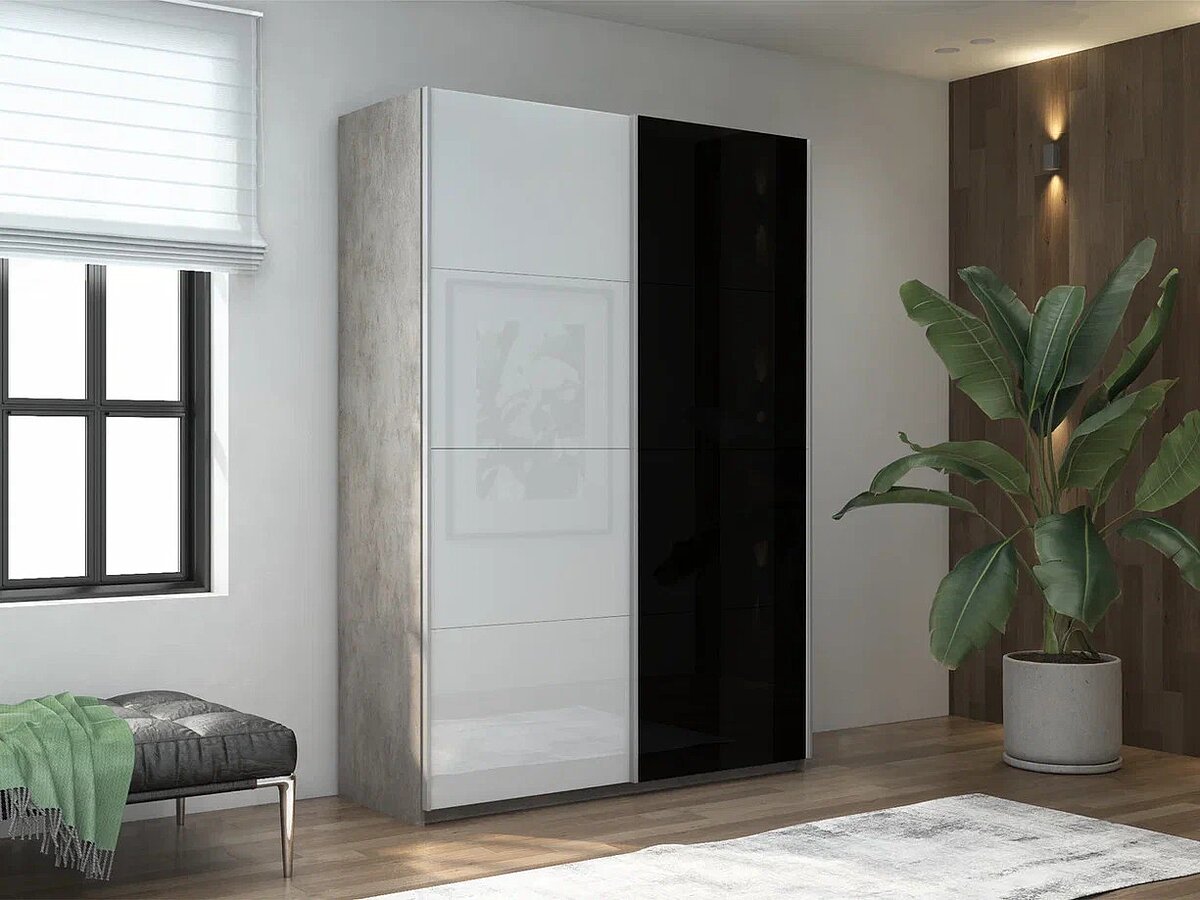 Шкаф-купе Прайм Стекло белое/Стекло черное, ширина 120 см оборудован 2-мя раздвижными дверями.