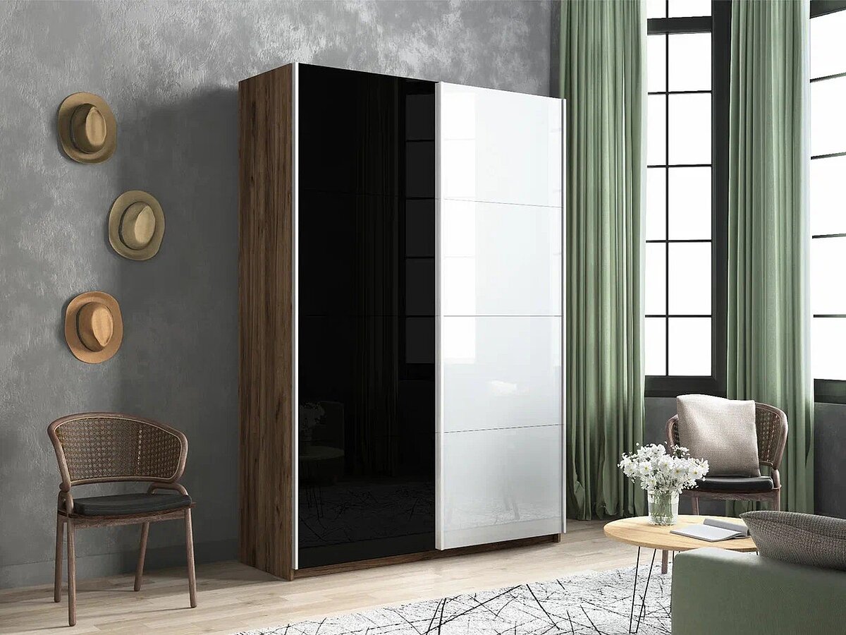 Шкаф-купе Прайм Стекло белое/Стекло черное, ширина 140 см оборудован 2-мя раздвижными дверями.