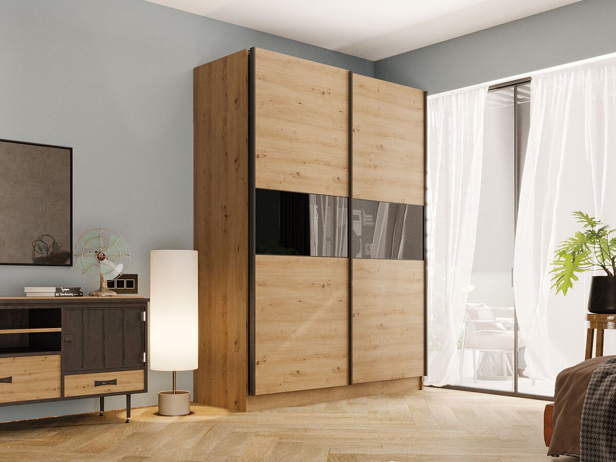 Шкаф-купе Марвин-3 1600, Дуб дикий/Чёрный глянец оборудован 2-мя раздвижными дверями.