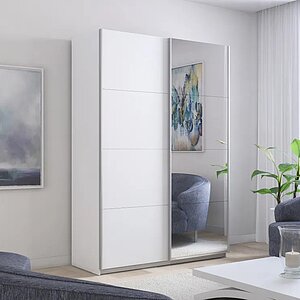 Шкаф-купе Е1 Прайм Зеркало/Стекло белое, ширина 120 см