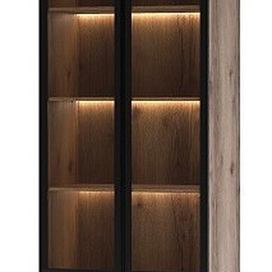 Харди двухдверный со стеклянными дверками, Дуб Делано темный/МДФ Белоснежный