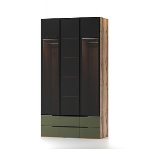 Харди 3-х дверный со стеклом, Дуб делано темный/ Грин софт