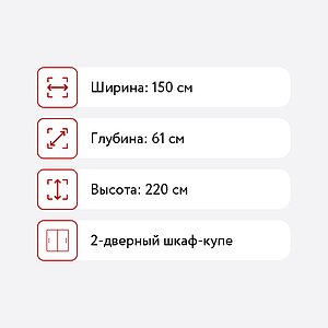 Лаура 2 2-х дверный с зеркалом, 2 полки и 2 штанги