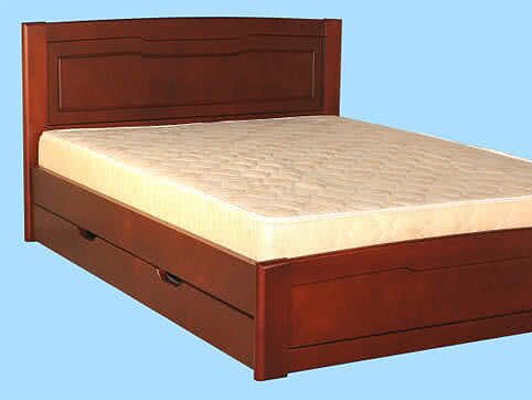Кровать Ариэль 2 с ящиками изготовлена из массива дерева. Натуральность, экологичность и надежность — главные преимущества этой деревянной кровати.