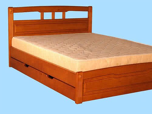 Кровать Флирт 2 с ящиками изготовлена из массива дерева. Натуральность, экологичность и надежность — главные преимущества этой деревянной кровати.
