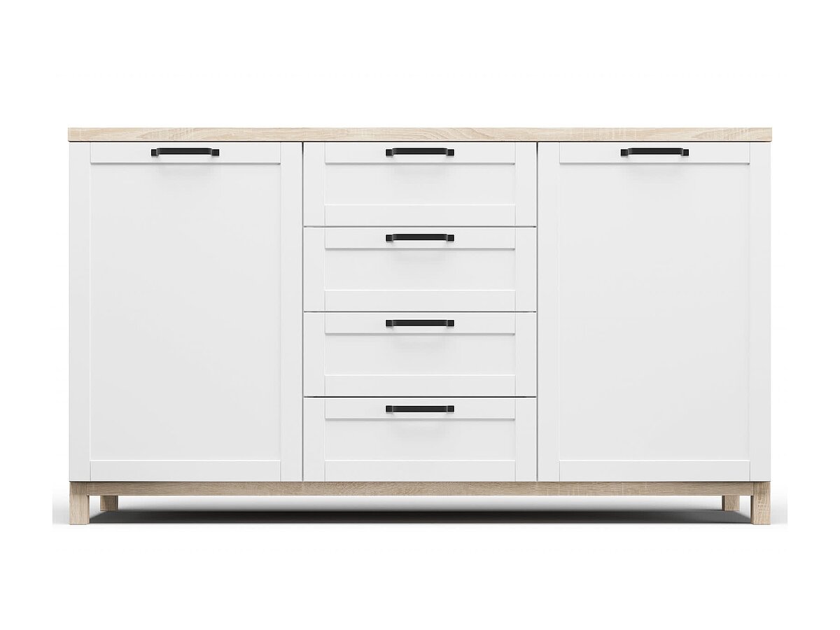 Комод Техас - 4 в белом цвете — стильное и функциональное решение для современного интерьера. Благодаря продуманной конструкции и лаконичному дизайну этот комод гармонично впишется в гостиную, спальню, прихожую или даже кабинет. Белые фасады с матовой поверхностью и элегантные черные ручки подчеркивают актуальный минимализм, а светлая столешница добавляет уюта и легкости.
