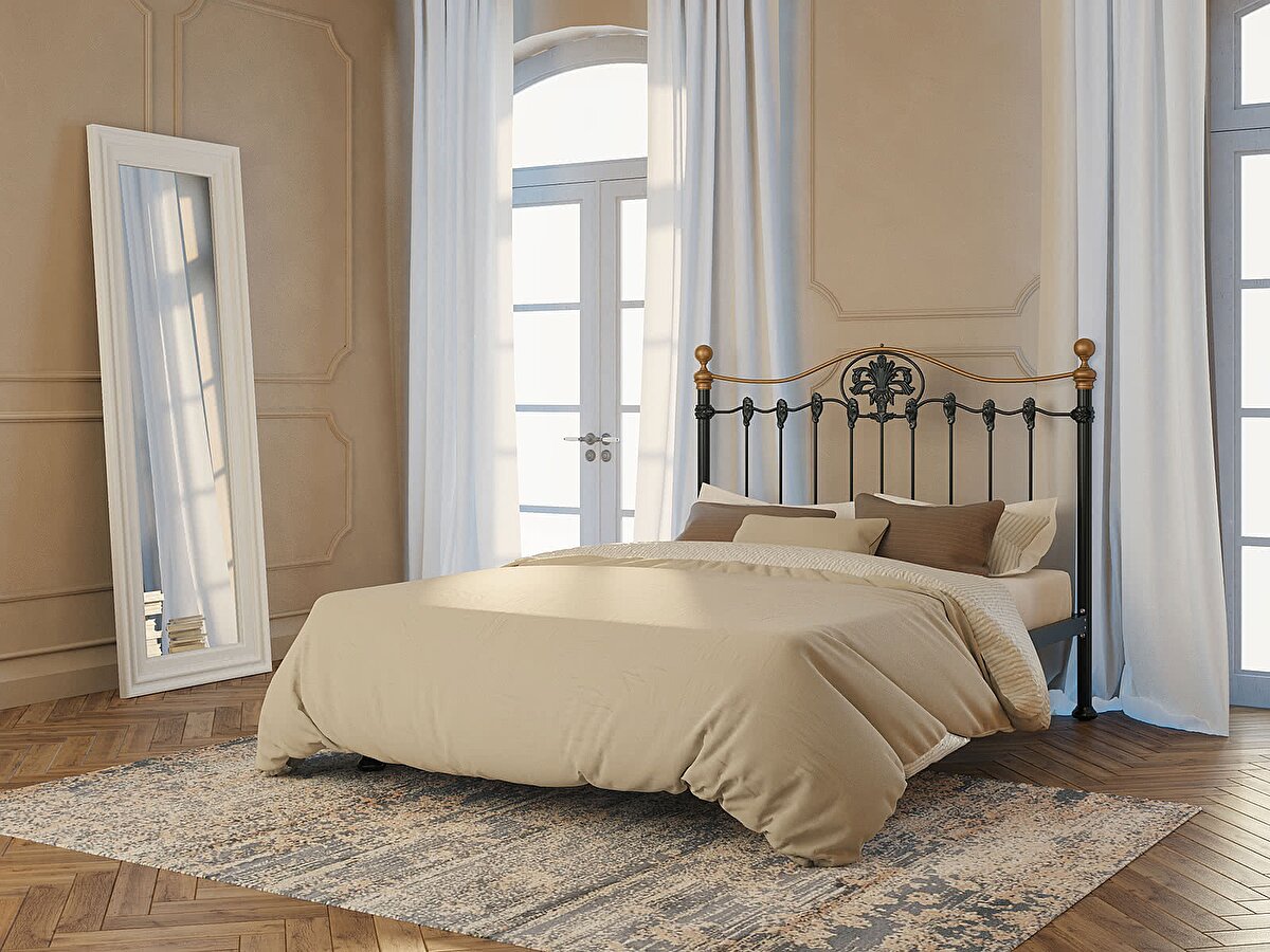 Оригинальная металлическая кровать с элементами литья — яркий акцент для вашей спальни. Ажурная конструкция создает впечатление легкости и воздушности. При этом кровать прочная и надежная, покраска устойчива к перепадам температур, влажности и механическим воздействиям. Долговечность кровати подтверждает 10-летний срок гарантии от производителя. Такая кровать — отличный выбор как для дома, так и для дачи.