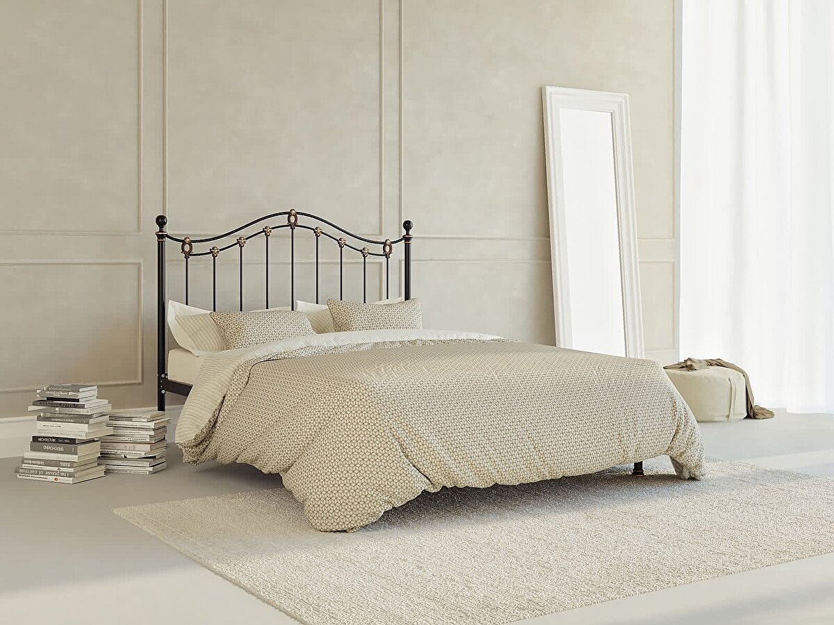 Кровать Kari (1 спинка) изготовлена с использованием металла. Надежность и элегантность металлической конструкции — отличный выбор для интерьера любой спальни.